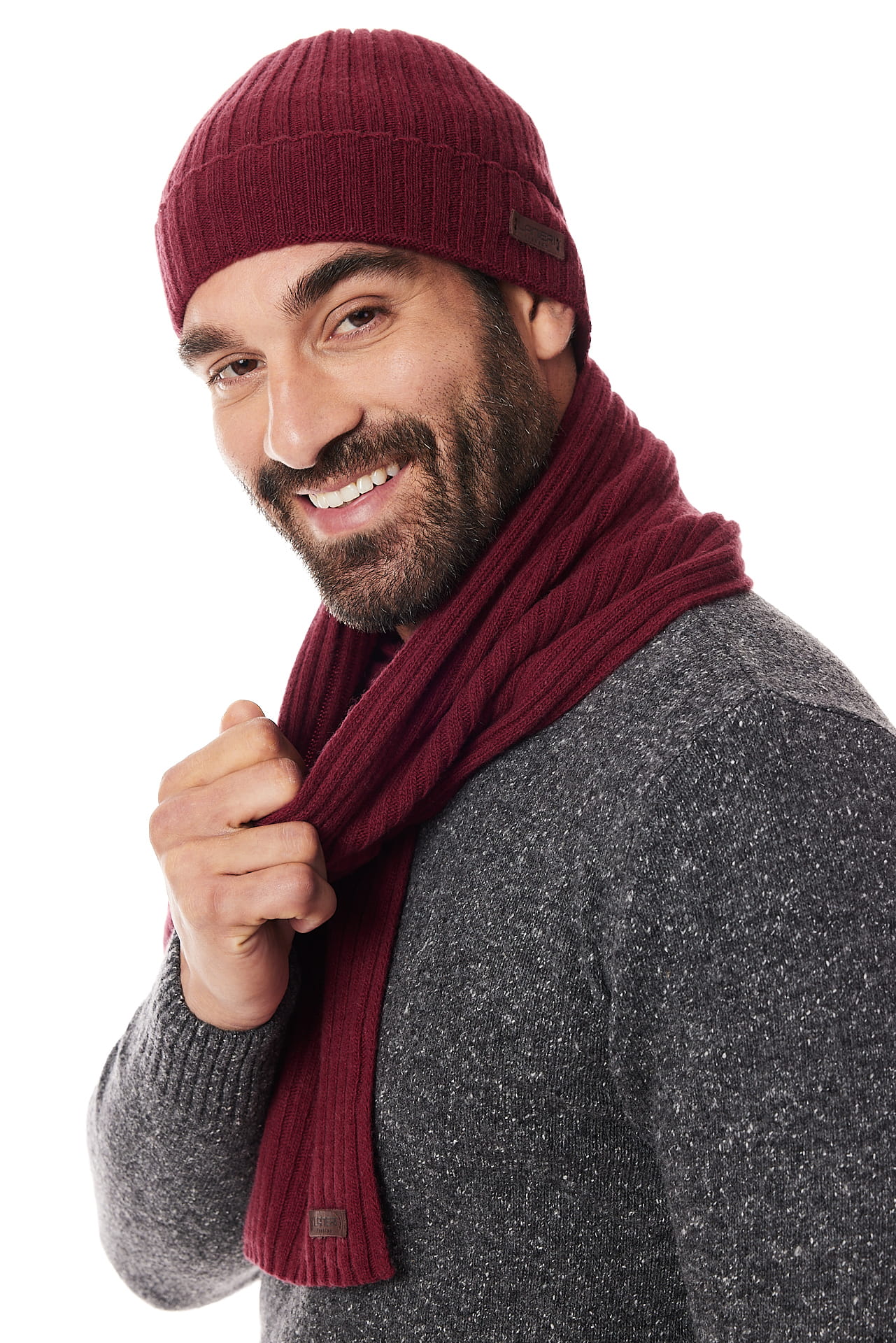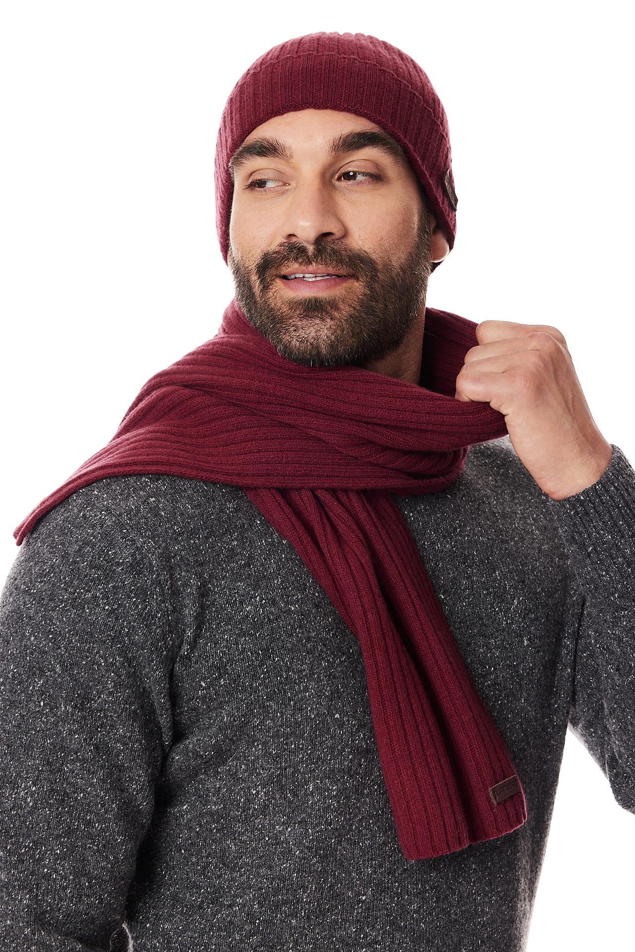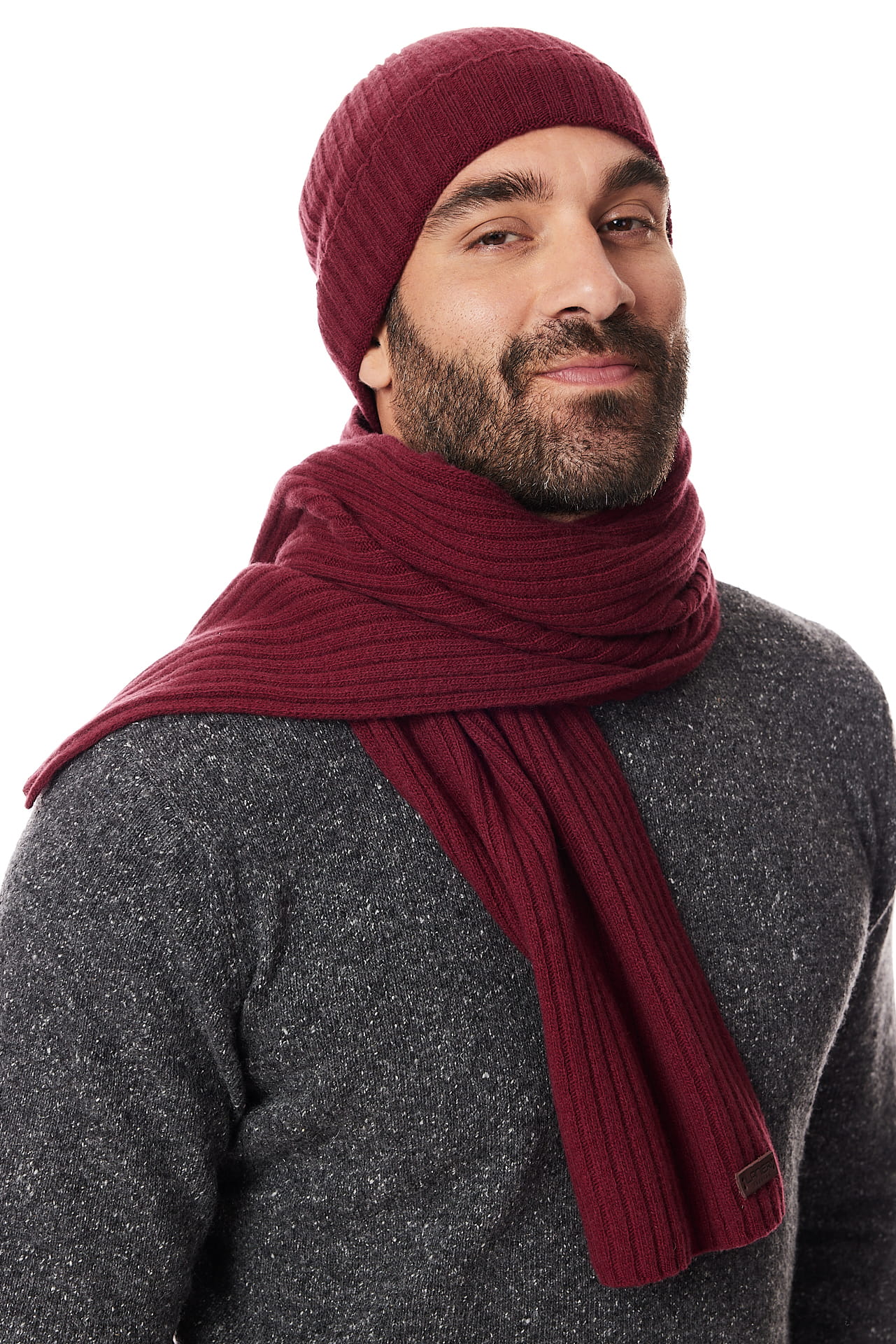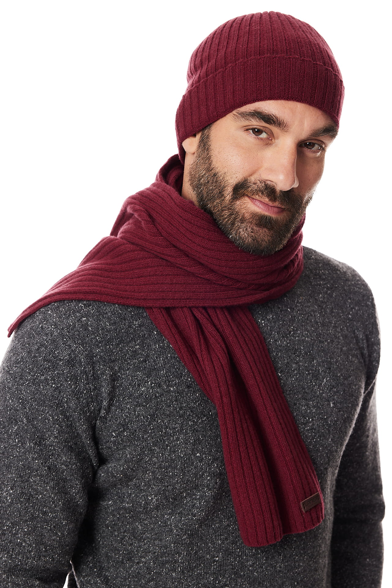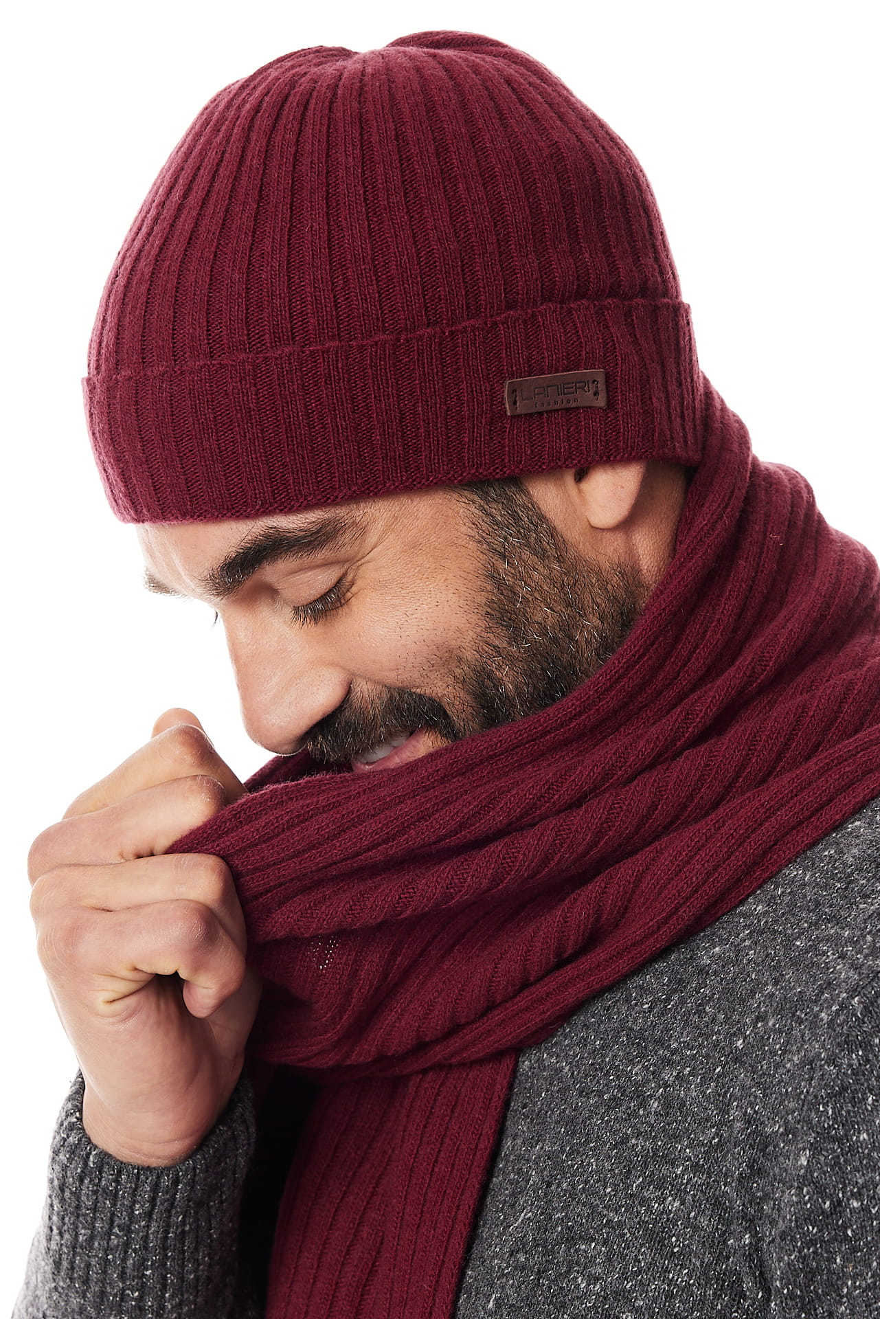 Komplet czapka i szal bordowy 10% kaszmir i 90% wełna | Lanieri Fashion