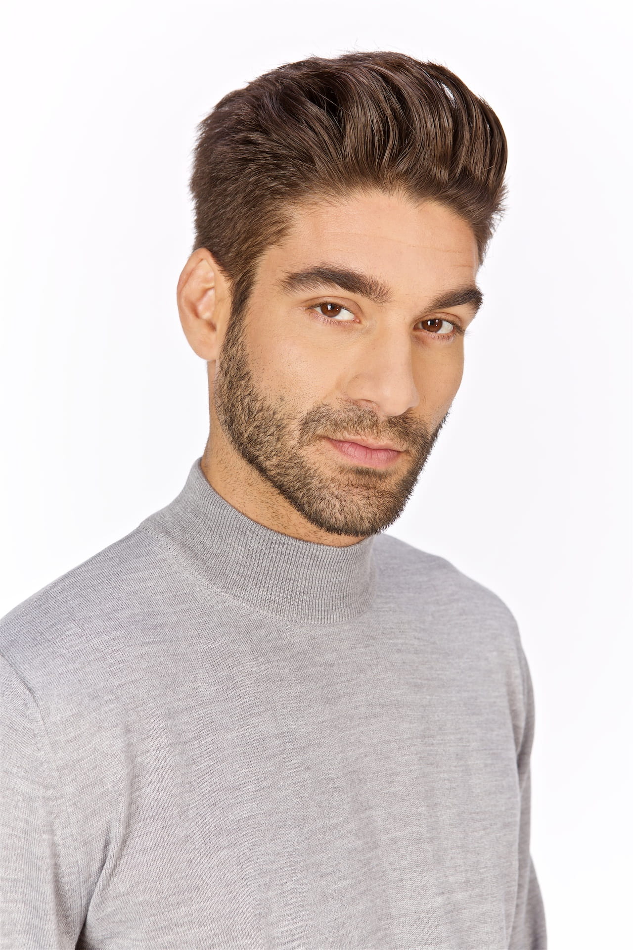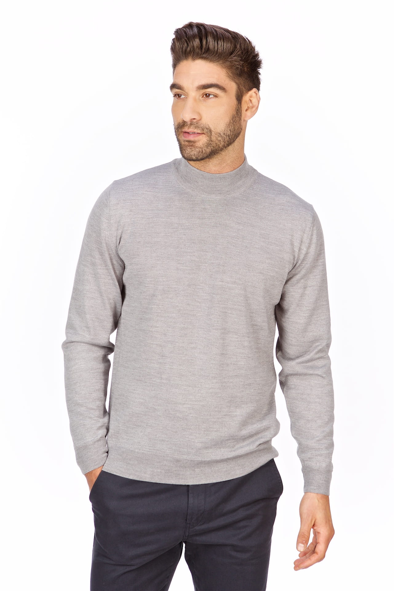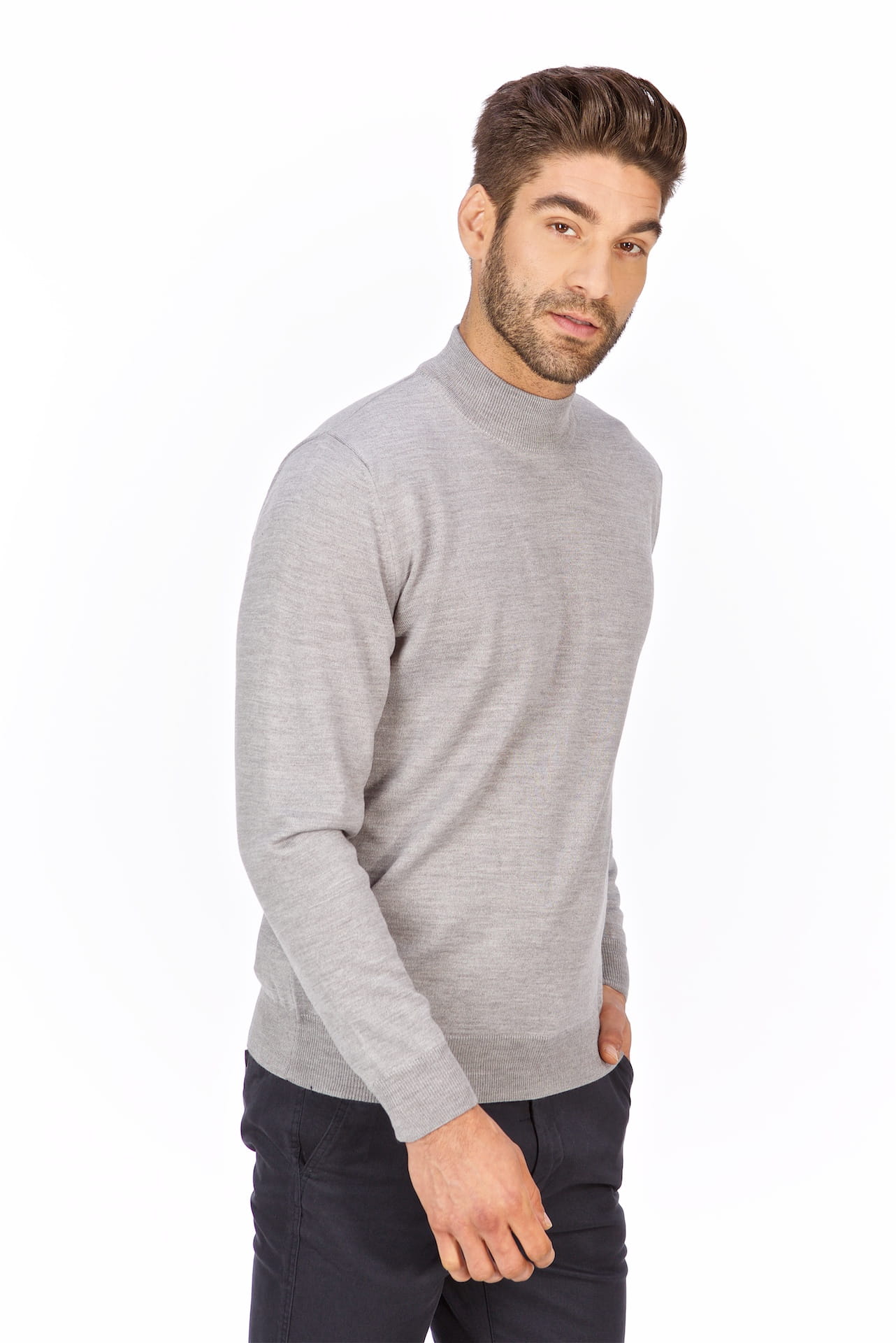 Zapraszamy do odkrycia naszego swetra męskiego półgolfu w kolorze jasnopopielatym.