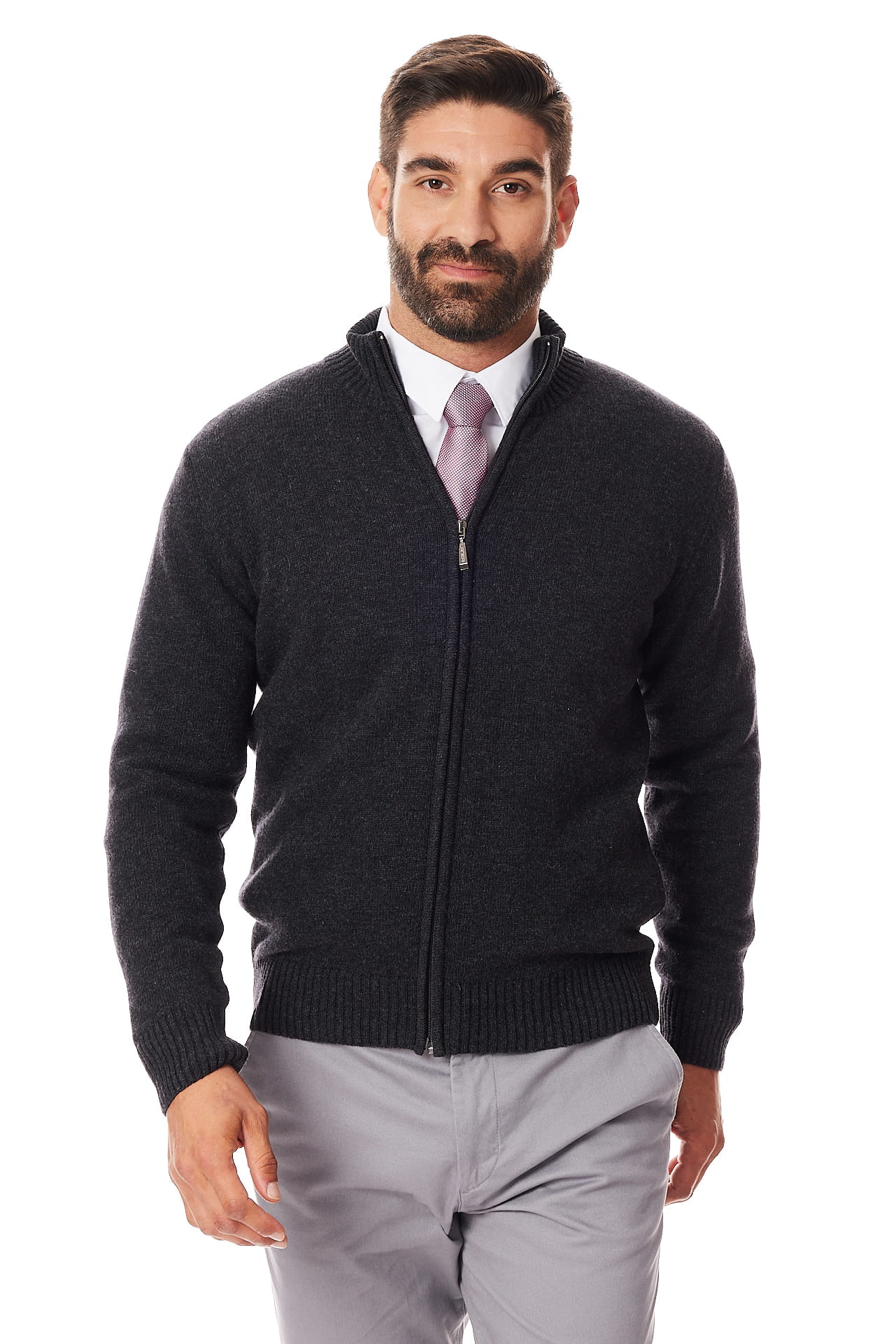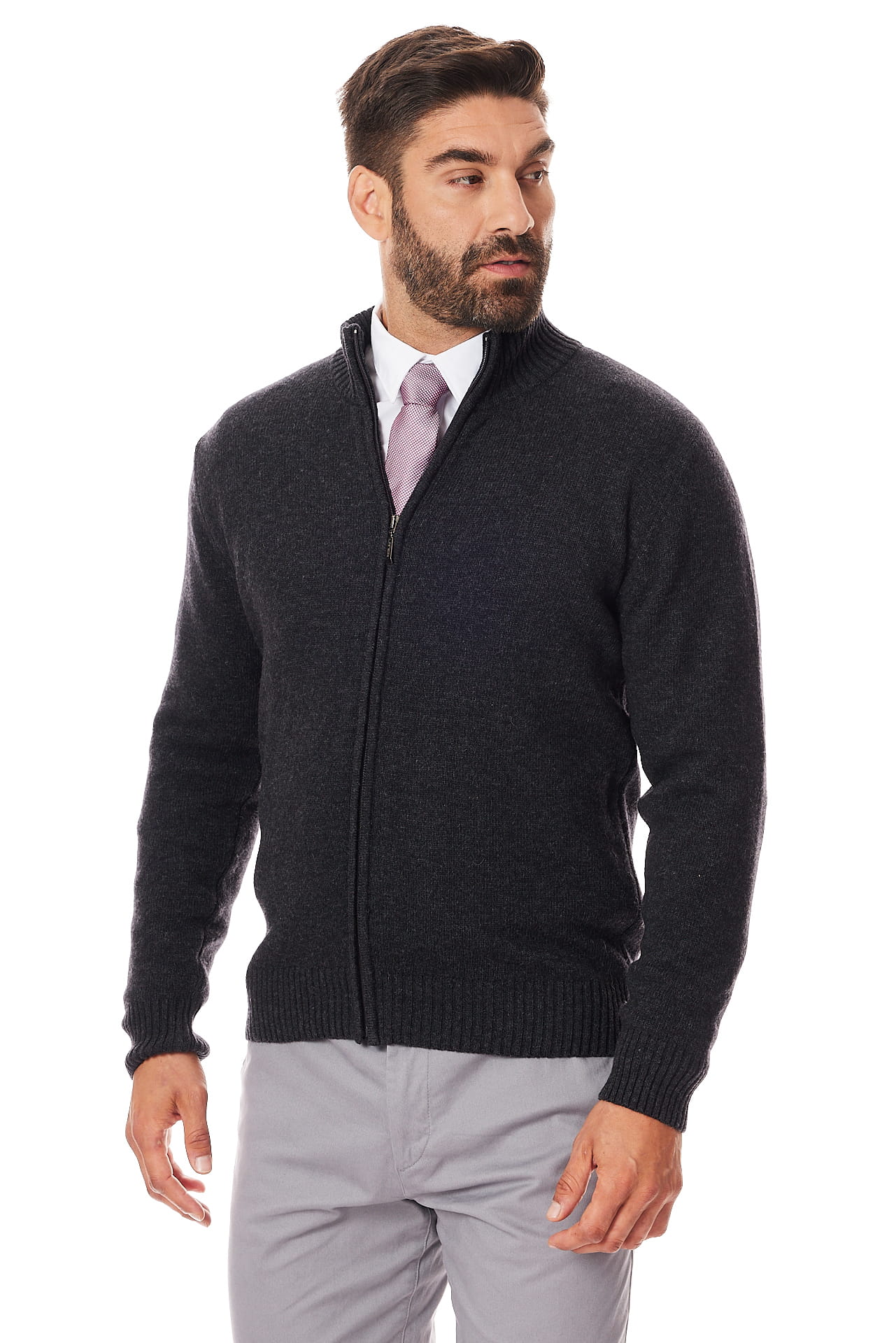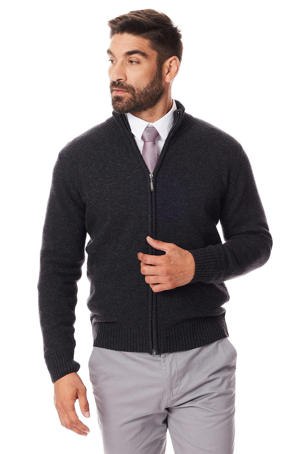 Sweter męski grafitowy zapinany na zamek 80% wełny | Lanieri Fashion