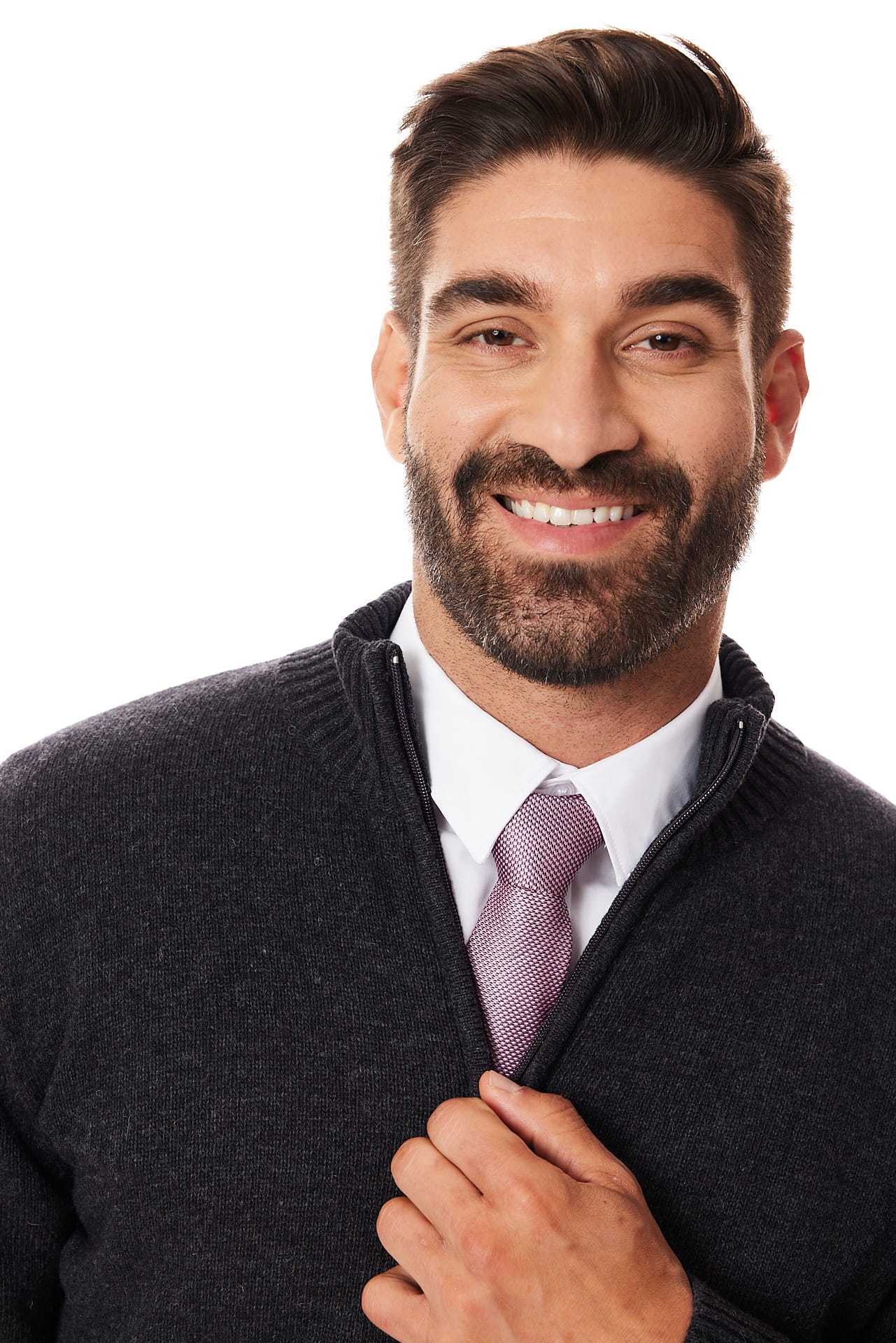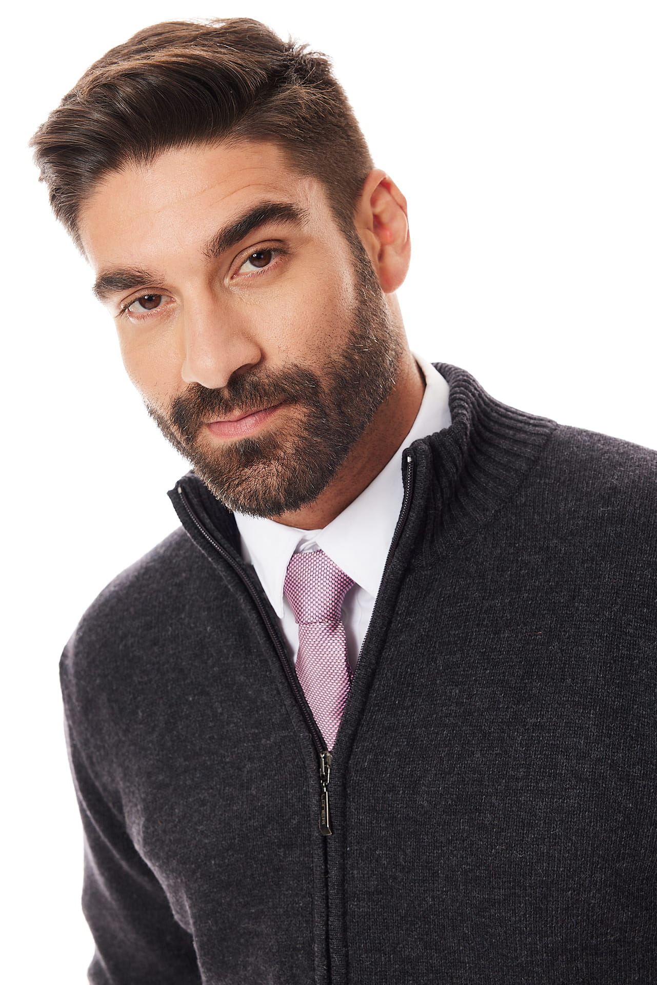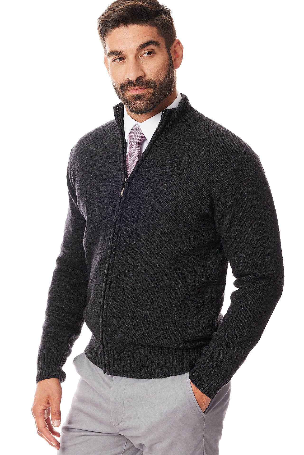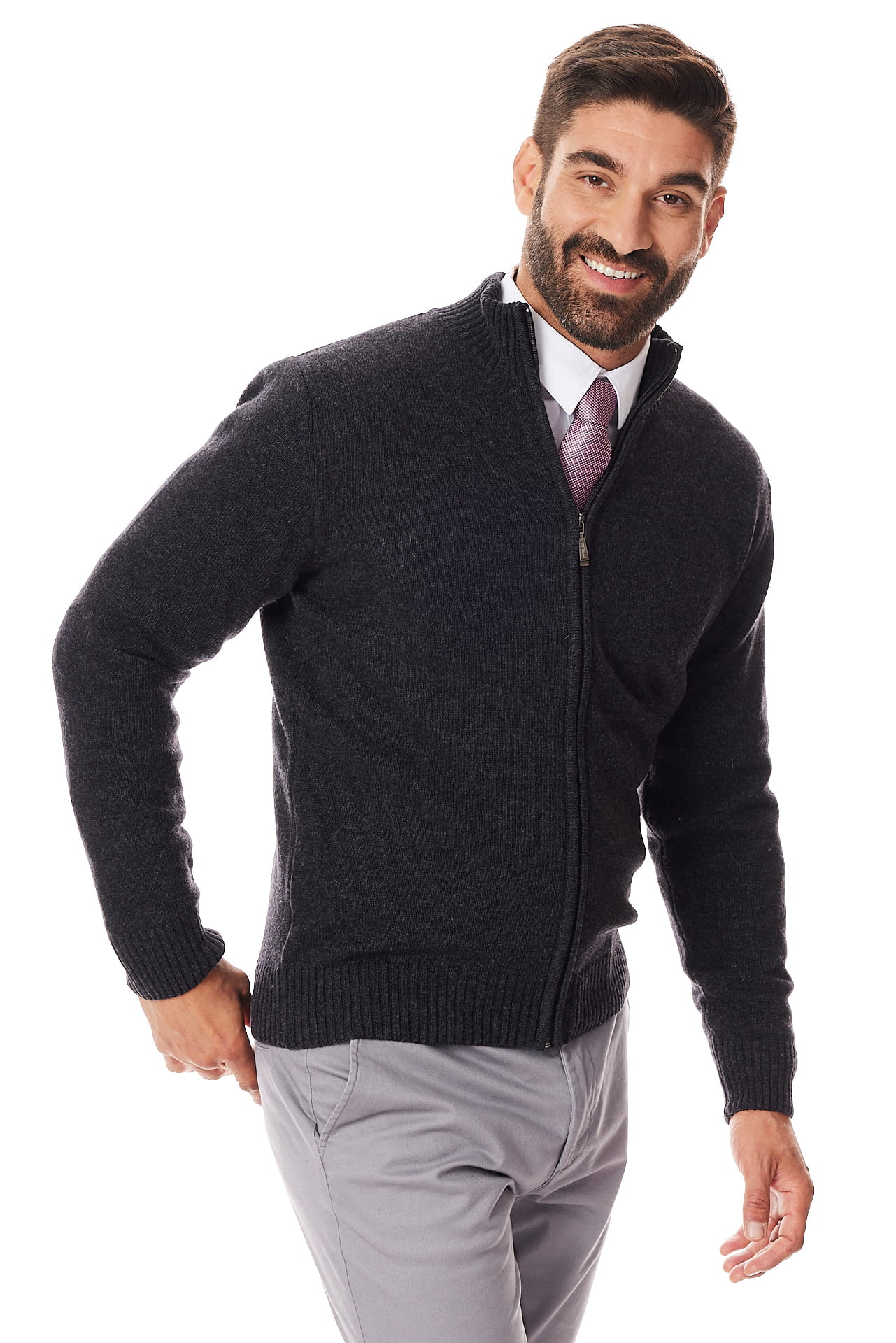 Sweter męski grafitowy zapinany na zamek 80% wełny | Lanieri Fashion