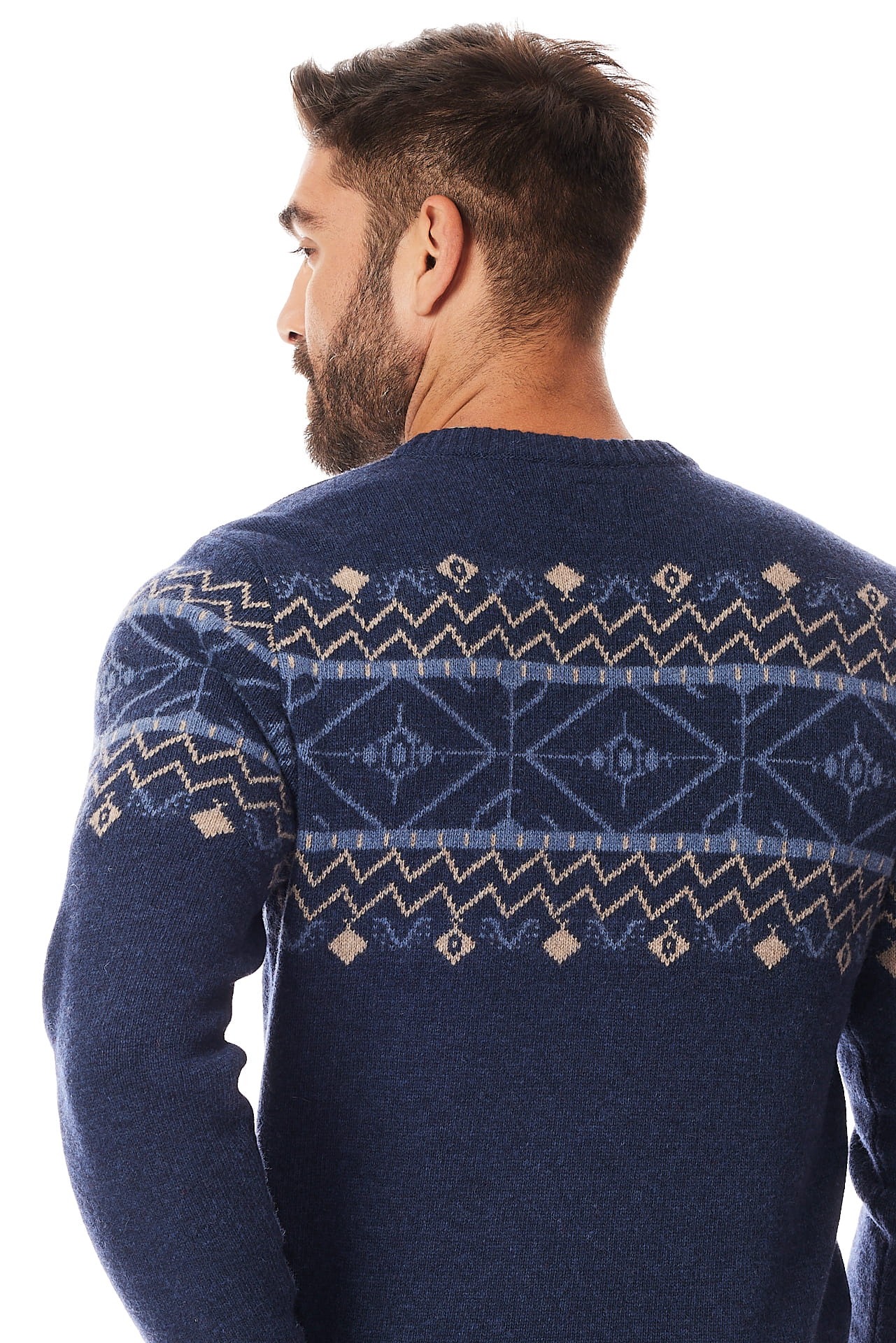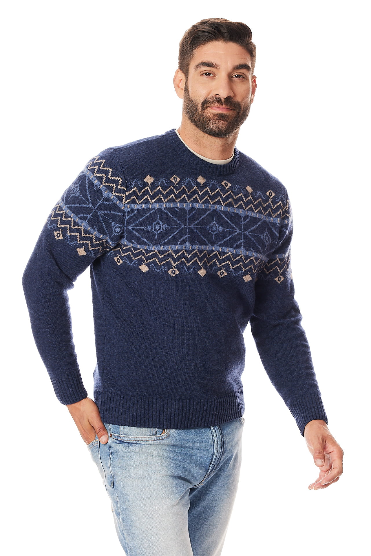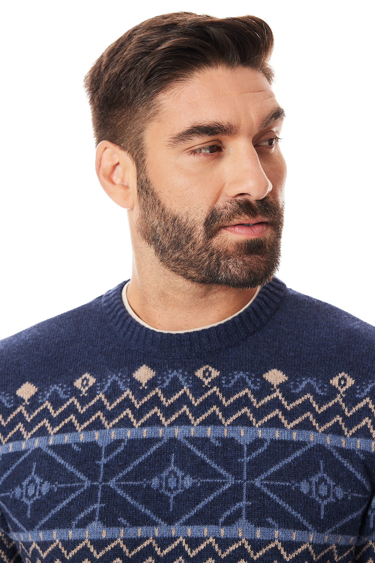 Sweter męski granatowy półgolf norweski wzór 80% wełny | Lanieri Fashion