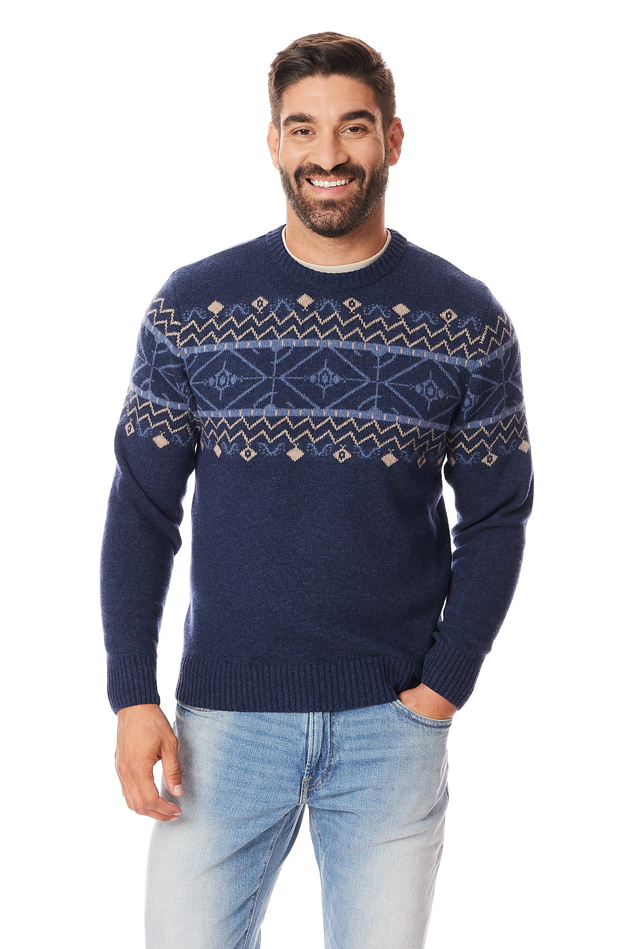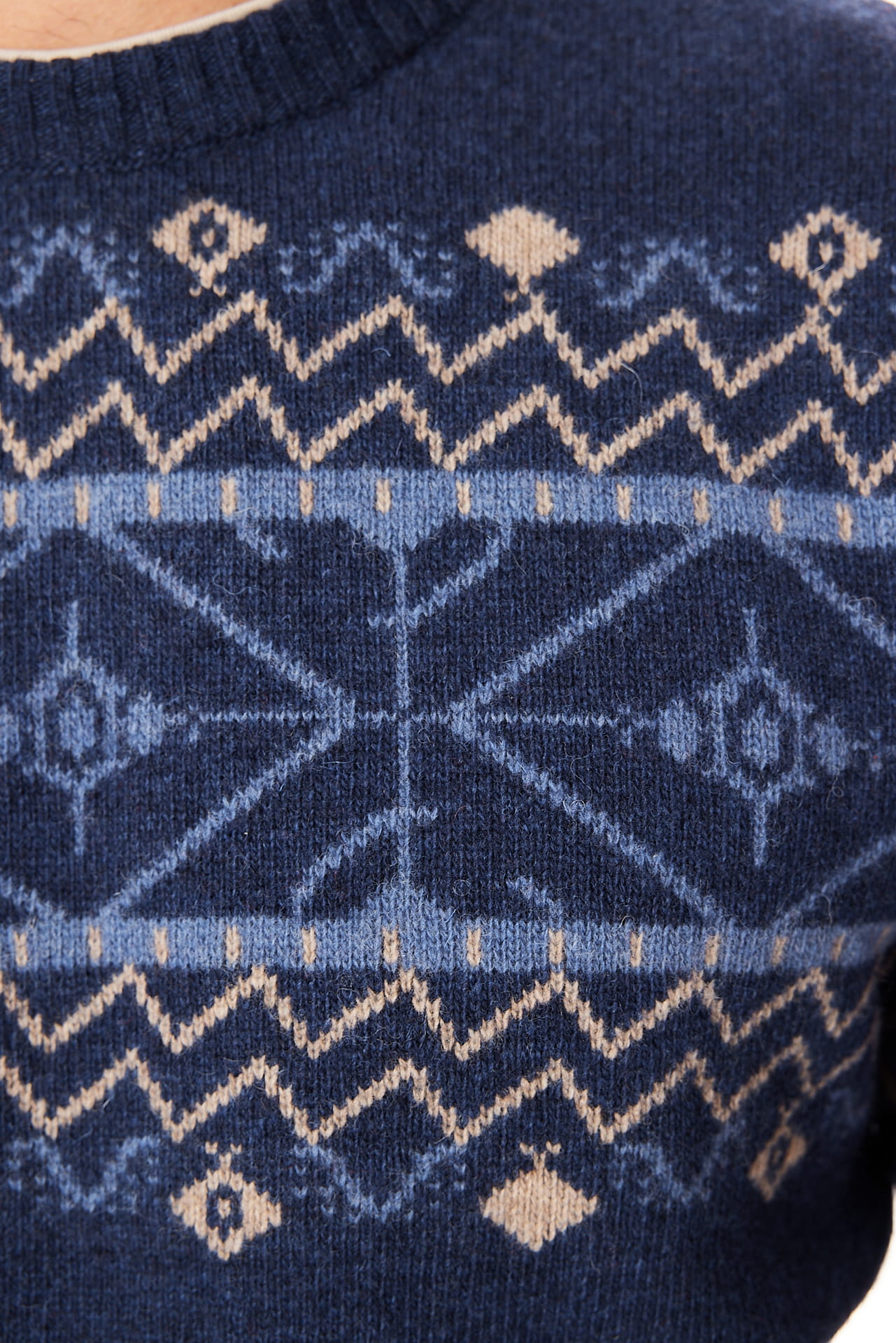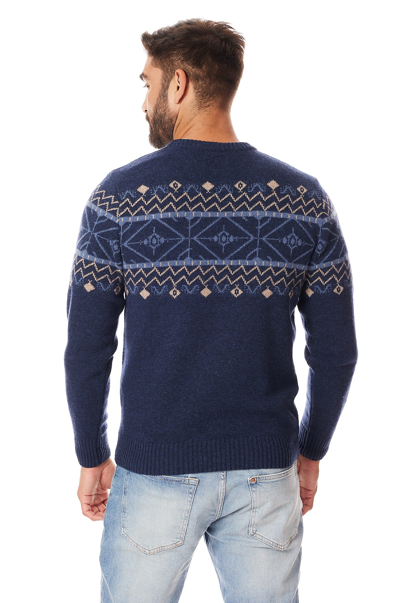 Sweter męski granatowy półgolf norweski wzór 80% wełny | Lanieri Fashion