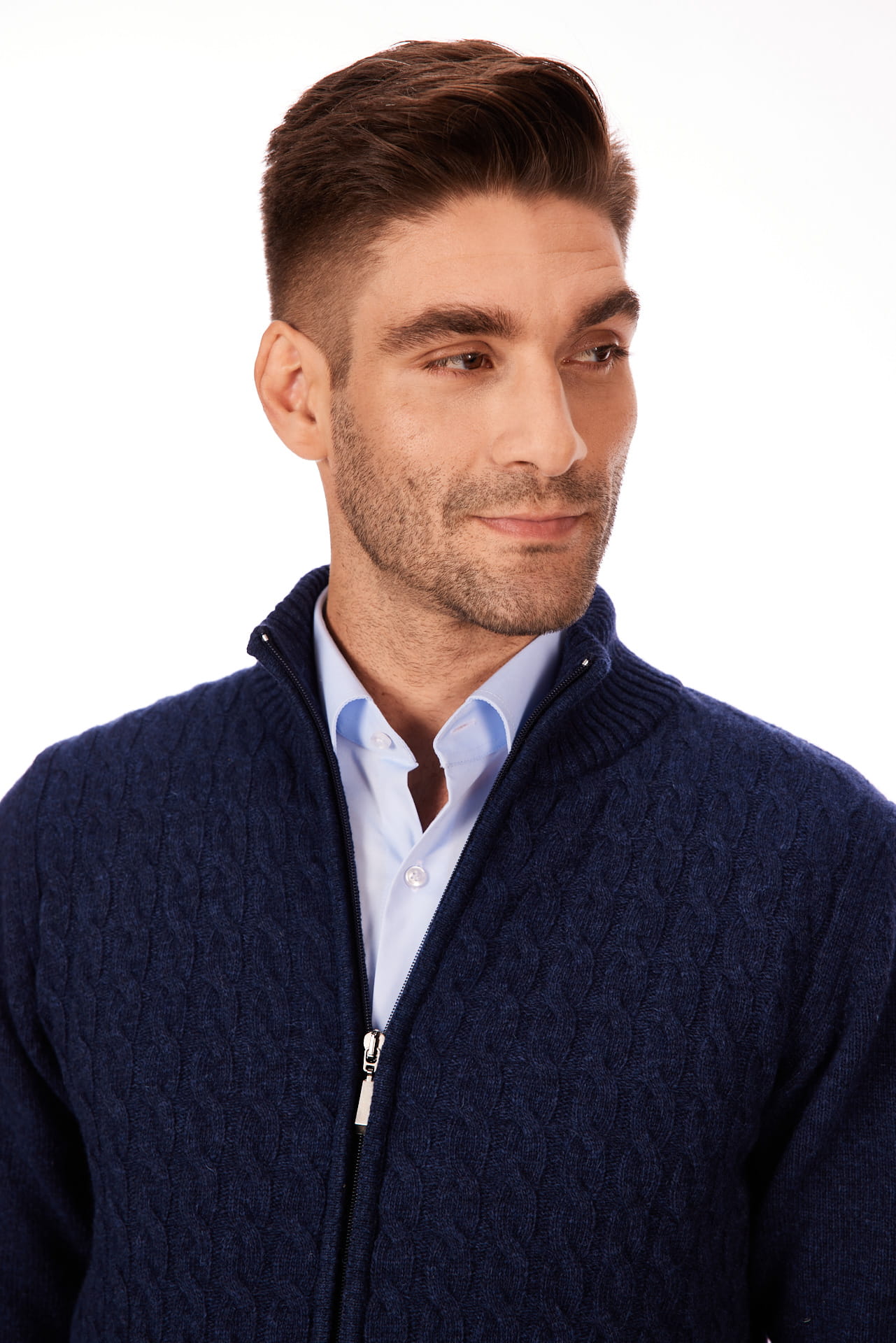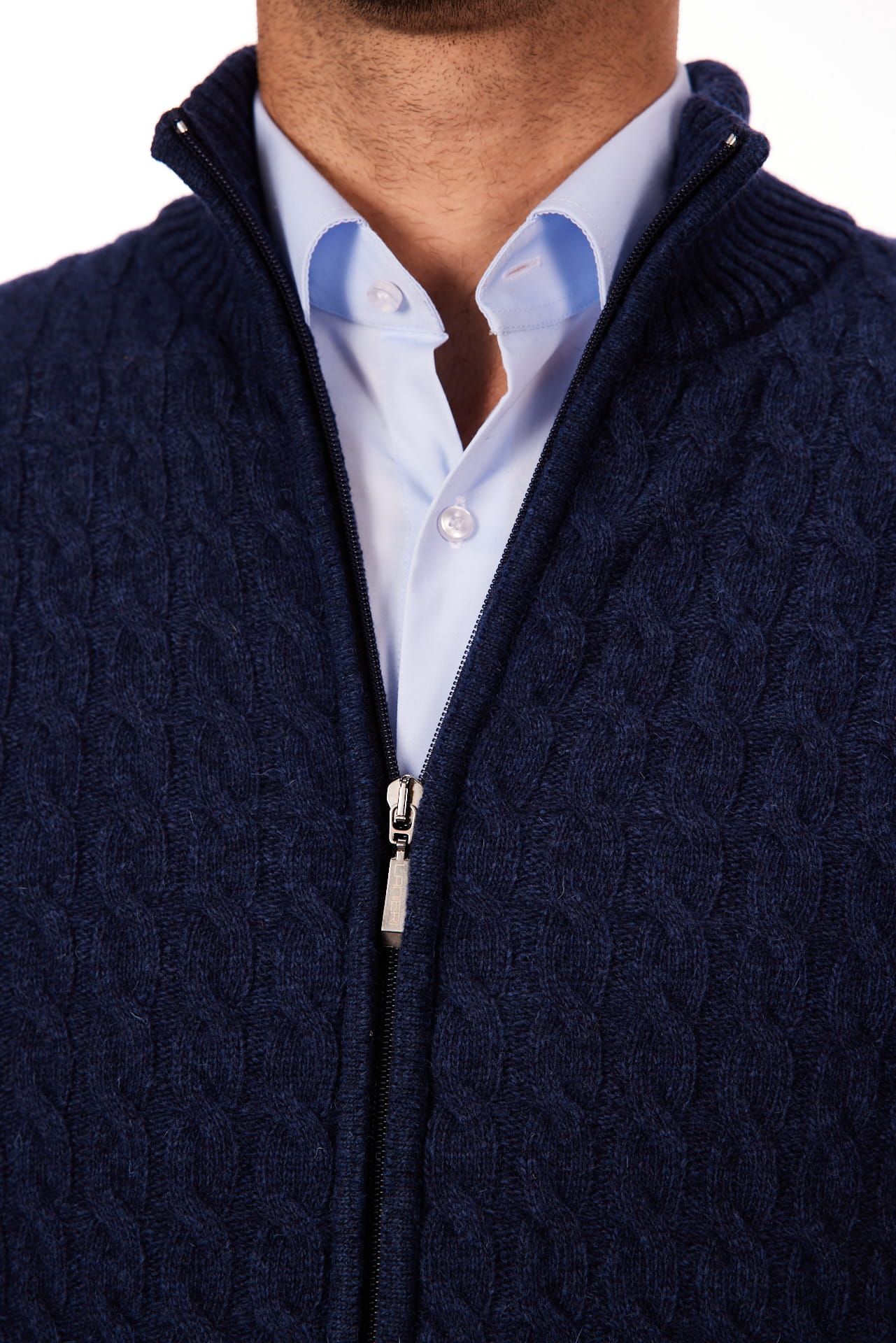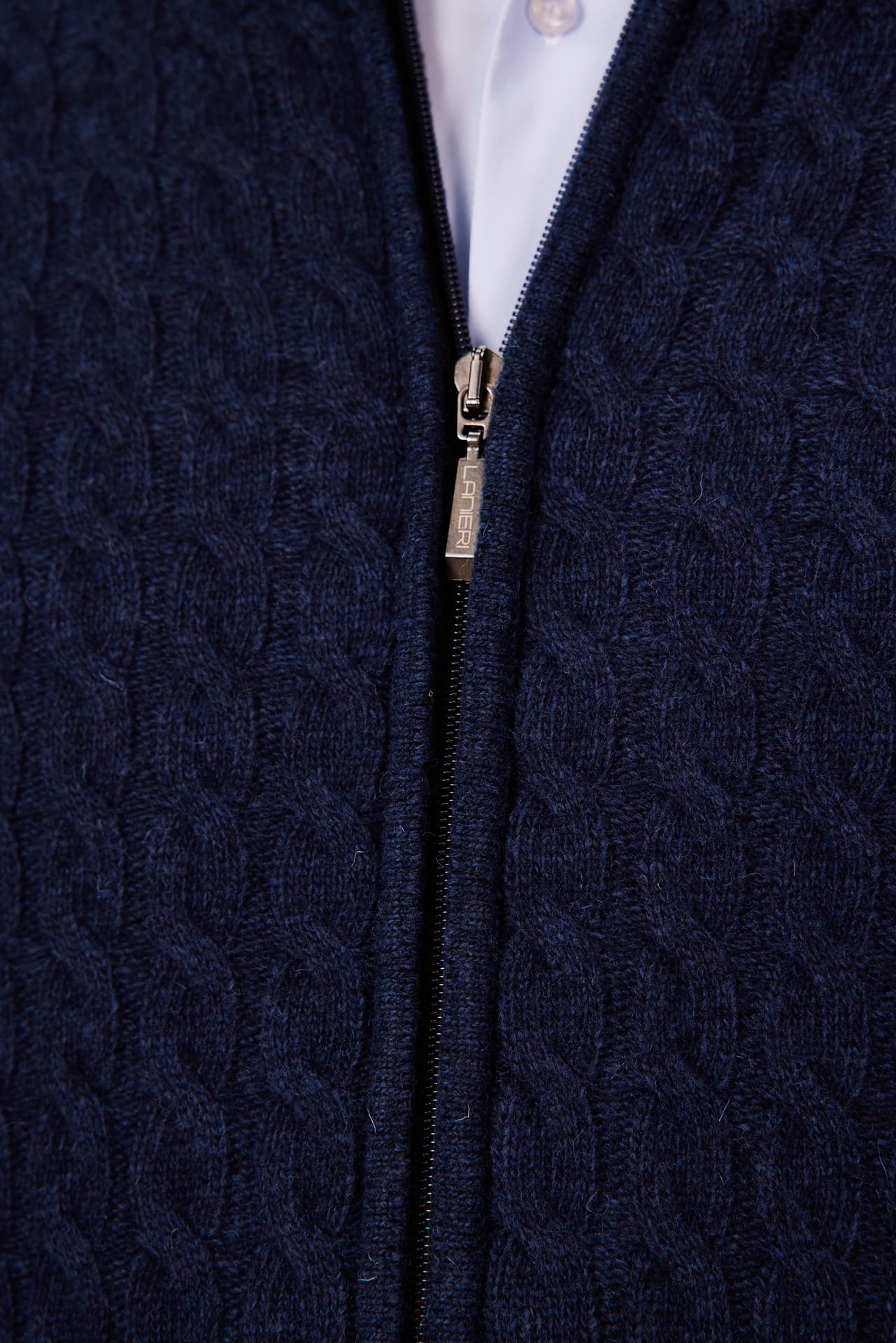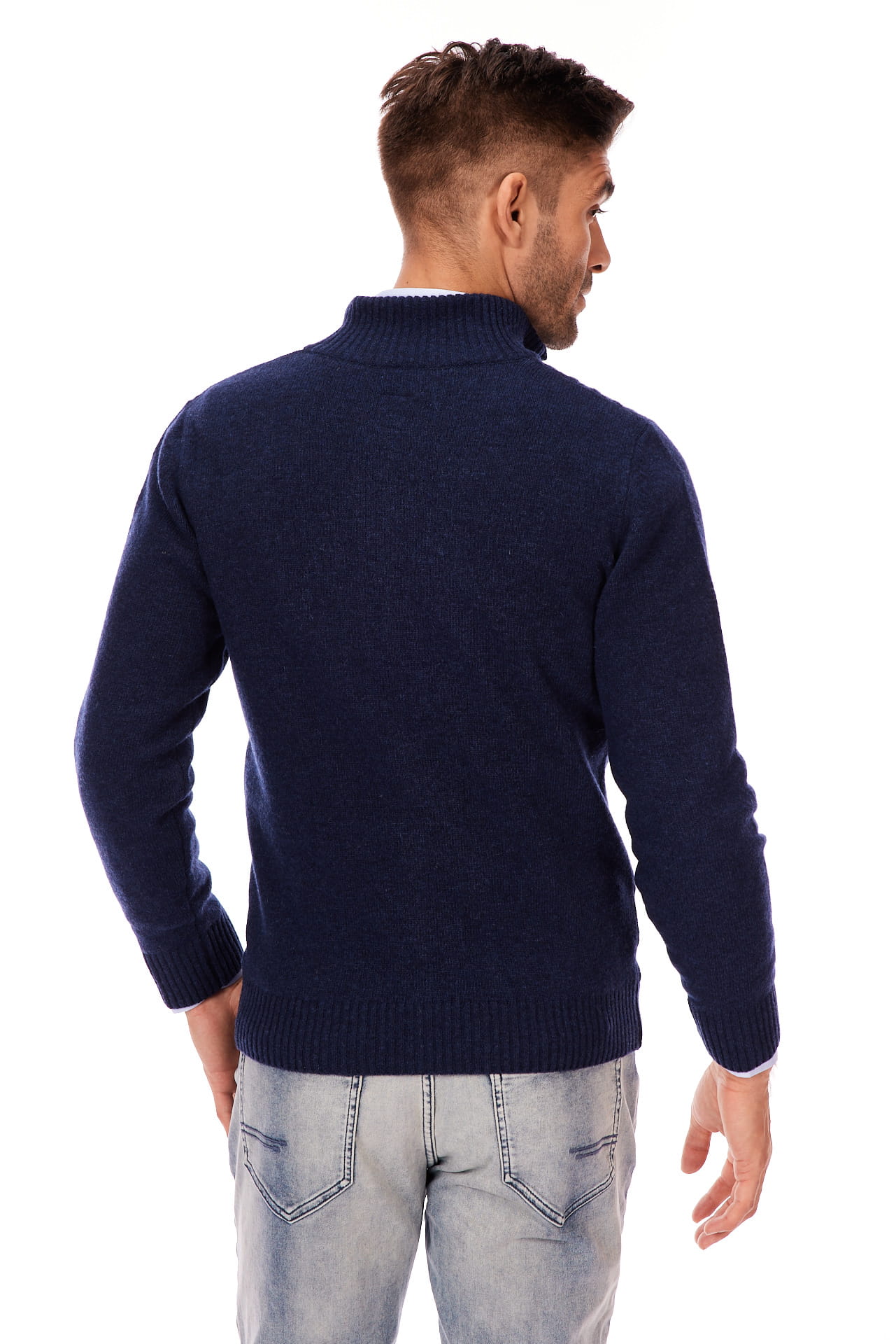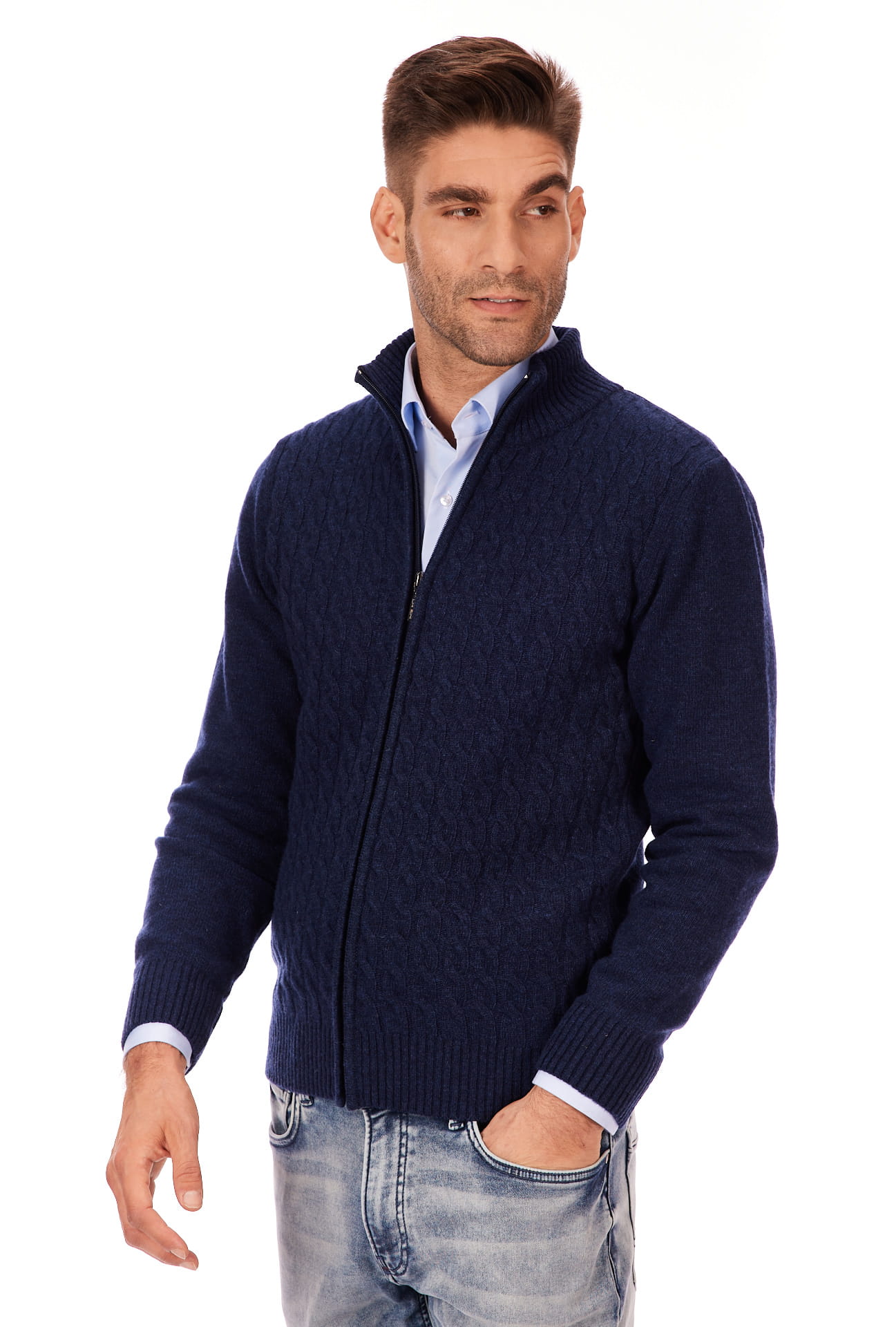 Sweter męski granatowy zapinany na długi zamek 80% wełny | Lanieri Fashion